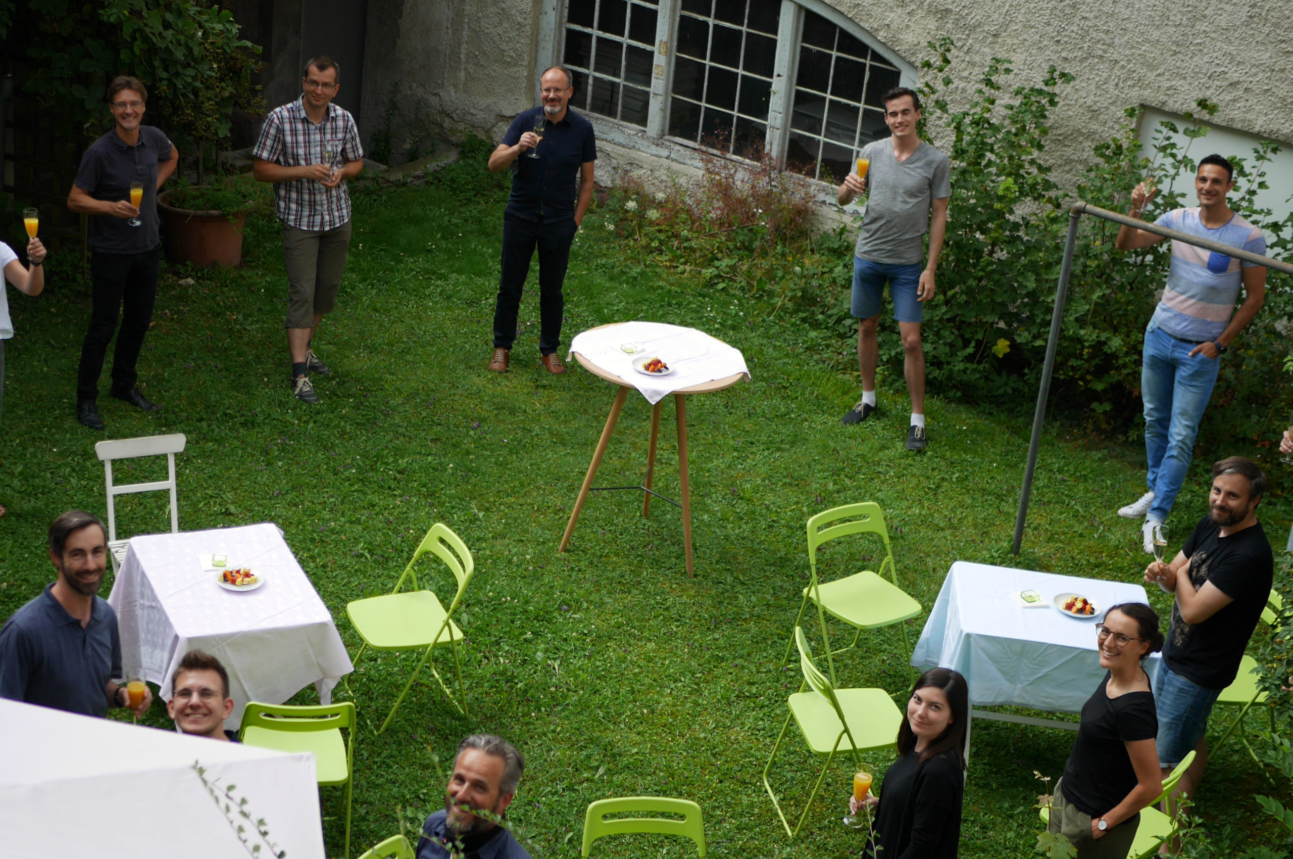 Mit Einhaltung der geltenden Corona-Bestimmungen konnten das alle zusammen, aber mit ausreichend Abstand, in unserem Bürogarten feiern.